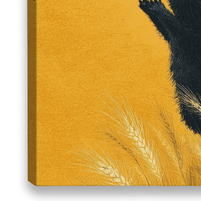 Un chaton noir enjoué saute dans l'herbe dorée pour attraper un délicat papillon bleu suspendu dans l'air chaud et lumineux. Le contraste entre la fourrure d'un noir profond et le fond jaune radieux capture un moment d'innocence, de curiosité et de joie pure. Cette œuvre d'art est nostalgique et édifiante, évoquant la magie des petites…