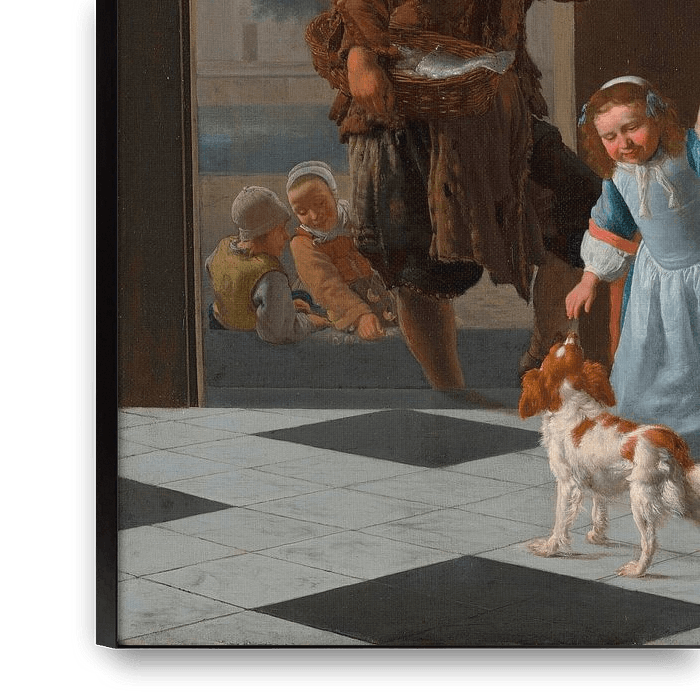 Achetez Un poissonnier à la porte, Jacob Ochtervelt en tant que reproduction sur toile, aluminium, ArtFrame ou photographie (encadrée), impression d'art en haute qualité et tout format