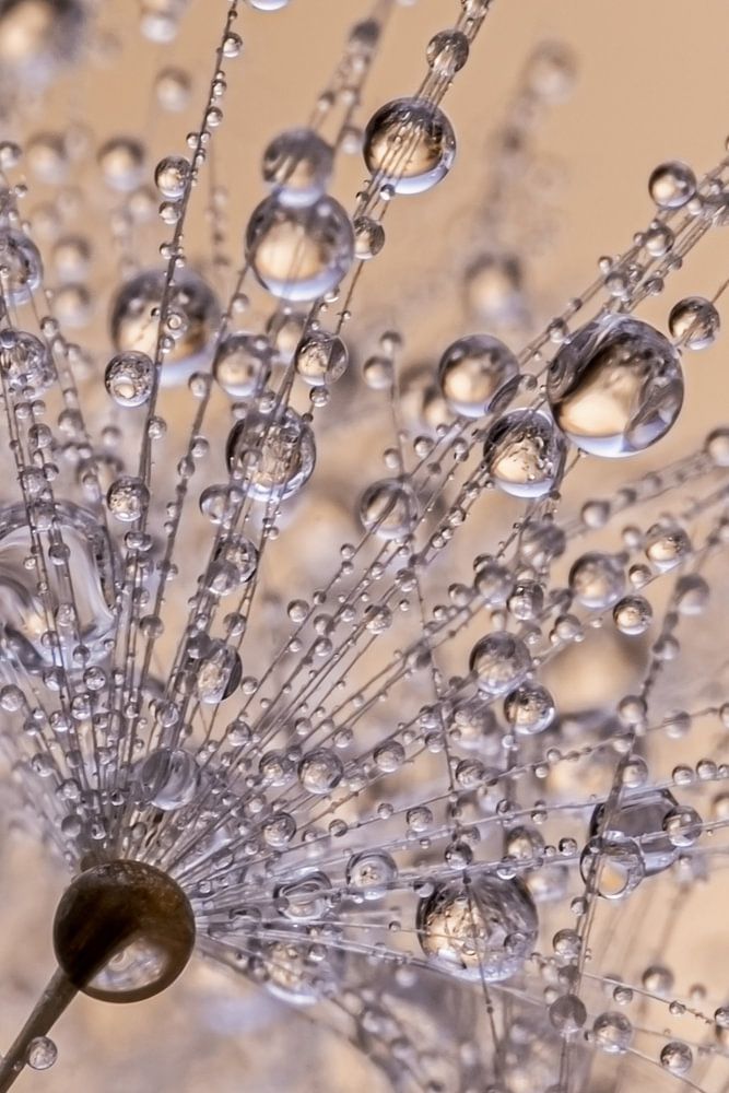 La profondeur de champ est faible (quelques millimètres seulement des poils duveteux), ce qui crée un sentiment de profondeur dans l'œuvre, ainsi qu'une atmosphère calme et rêveuse. Le point focal se situe à l'endroit où la tige se transforme en peluche. Les gouttes contribuent également à créer cette atmosphère de rêve ; elles reflètent la lumière et cela crée des étincelles sur les gouttes.