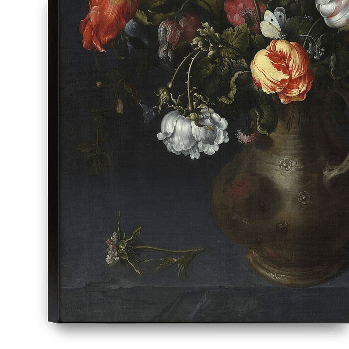 Le peintre de Delft Jacob Vosmaer a été l'un des premiers, sinon le pionnier, à se spécialiser dans la peinture de tableaux de fleurs, représentant souvent des spécimens rares que les artistes ne connaissaient que par les livres illustrés. Quelque temps avant 1870, ce panneau a été coupé sur les côtés et en haut (environ neuf centimètres), ce qui a permis de tailler la couronne impériale.