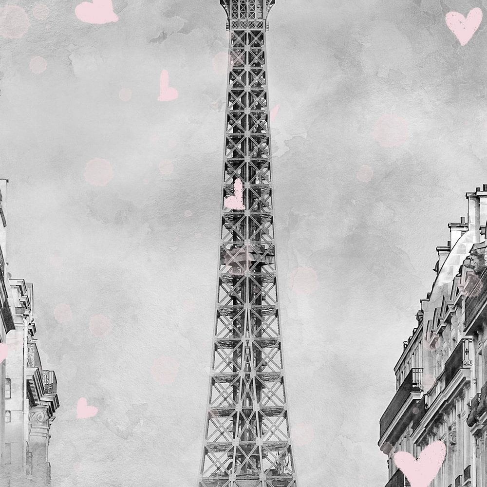 La Tour Eiffel à Paris marque le paysage urbain de ses 324 mètres. C'est l'un des symboles les plus visités au monde. Scène de rue urbaine depuis l'avenue d'Eylau. Un design romantique en aquarelle avec des cœurs.