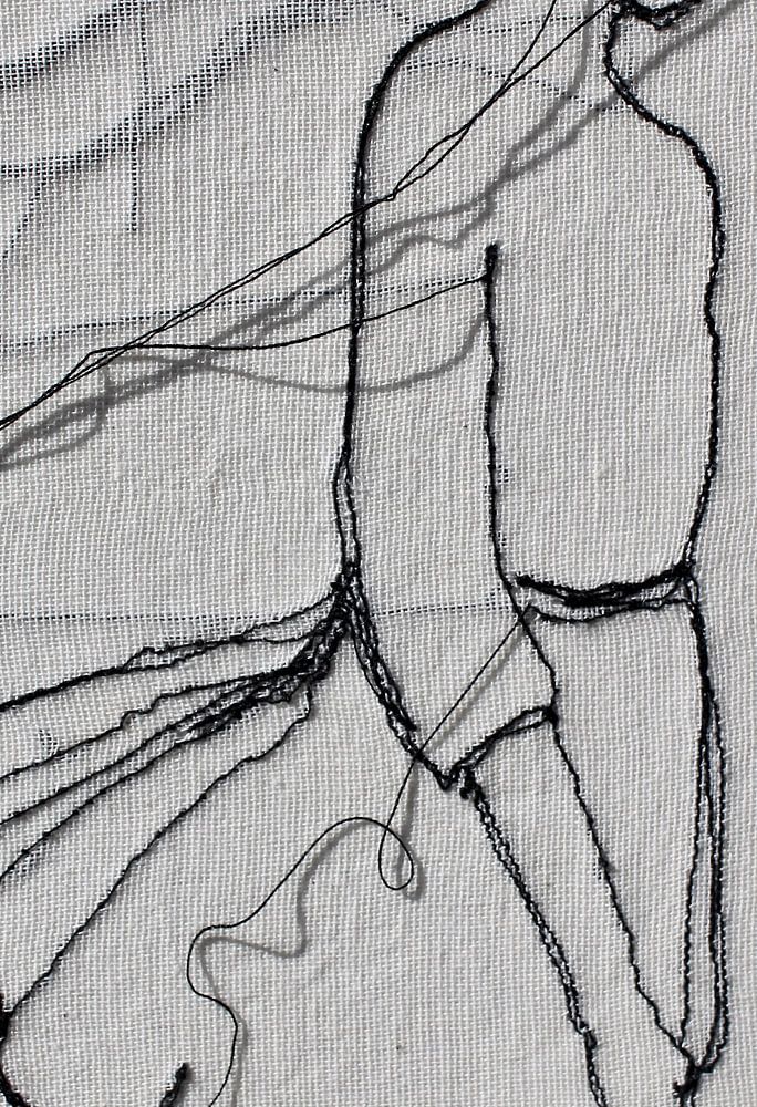 Une œuvre figurative de fil noir, une jeune fille en route vers l'âge adulte.