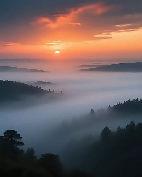De vastes congères s'étendent jusqu'à l'horizon et remplissent l'image d'une immensité calme, presque sacrée. La surface de la neige est sculpturale : des nervures douces comme des dunes, des arêtes vives et des creux doux dessinent un jeu d'ombre et de lumière qui, avec une résolution maximale, rend visible chaque grain et chaque structure cristalline. Un voile de brouillard mystique recouvre profondément le paysage et atténue les contours, ne laissant apparaître que des silhouettes et conférant à la scène une atmosphère mystérieuse et rêveuse. À travers la brume, le coucher de soleil se brise dans des tons chauds - or, abricot et rose paille - qui se superposent délicatement aux tons bleus et argentés froids de la neige et créent un rim light diffus sur les bords de la neige soufflée.