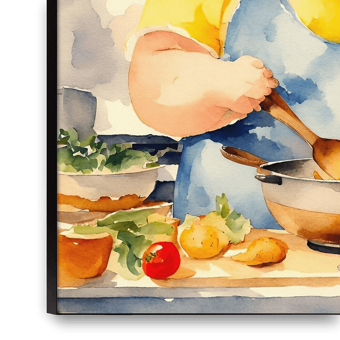 Acheter ce art numérique Une femme chaleureuse dans la cuisine par De gezellige Dames sur toile, aluminium, ArtFrame ou photographie (encadrée), impression d'art en haute définition et tout type de format.