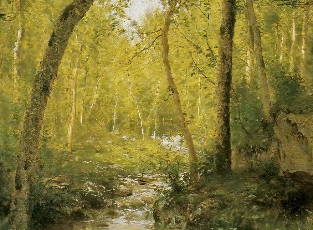 A Summer Haunt d'Alexander Helwig Wyant est une peinture de paysage tranquille qui capture l'essence d'une retraite estivale paisible. L'œuvre dépeint un cadre naturel serein, avec une verdure luxuriante, des arbres imposants et un ruisseau sinueux. Les jeux d'ombre et de lumière ajoutent de la profondeur et de la dimension à la scène, créant ainsi un sentiment de profondeur et d'atmosphère. La maîtrise du pinceau et de la palette de couleurs de Wyant évoque un sentiment de tranquillité, invitant les spectateurs à s'immerger dans la beauté de la nature. C'est une représentation parfaite d'une escapade estivale sereine.