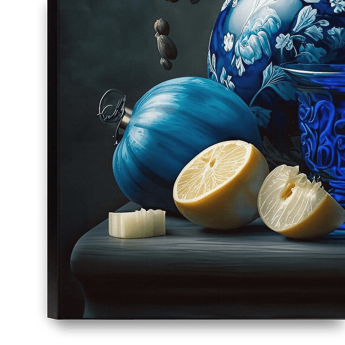 À propos de ‘Une nature morte bleue classique’ par Vlindertuin-Art