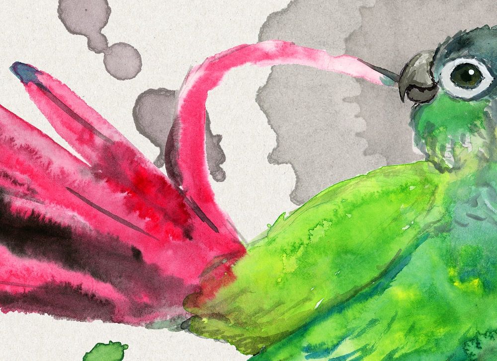 Dessin à l'encre acrylique d'une perruche à joues vertes se brossant les plumes.L'oiseau est occupé à se brosser la queue. Il a une plume de la queue dans son bec. Le style de peinture est grossier, avec beaucoup d'eau, ce qui donne à l'ensemble un aspect un peu tacheté. Pour accentuer cet effet, quelques éclaboussures d'encre ont été ajoutées à l'arrière-plan. Le dessin est réalisé sur une texture de papier chaude. Un dessin La perruche à joues vertes (Pyrrhura molinae) ou perruche à joues vertes est un petit perroquet du genre Pyrrhura, qui fait partie d'un groupe à longue queue de la sous-famille Arinae des perroquets du Nouveau Monde. Le terme perroquet est souvent utilisé pour ce perroquet et ses proches en aviculture. Originaire des forêts d'Amérique du Sud, la perruche à joues vertes mesure généralement 26 cm de long et pèse de 60 à 80 g. Elle est principalement verte, avec une couronne brune/noire/grise, des anneaux périophtalmiques blancs, des joues vertes, des plumes primaires des ailes bleues, un bec gris, et sa longue queue pointue est généralement marron. Il a de courtes rayures transversales sur la poitrine et une région ventrale rouge. Les mâles et les femelles ont une apparence identique. Les perruches à joues vertes sont courantes comme animaux de compagnie et sont des perroquets de compagnie populaires. Elles sont enjouées, affectueuses et intelligentes, ce qui leur confère une "grande personnalité dans un petit corps". Elles peuvent apprendre à parler, bien que leur vocabulaire soit limité et leur voix rauque. Ils adorent être tenus (bien que certains aiment cela plus que d'autres) et peuvent apprendre des tours tels que se coucher sur le dos, "embrasser", secouer, se suspendre la tête en bas et peuvent même être dressés à la maison.