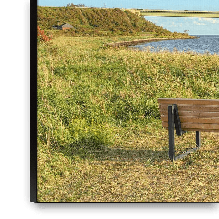 Le banc du Fehmarnsund invite à faire une pause avec vue sur le pont du Fehmarnsund. Des nuages épars passent et une légère brise de la mer Baltique souffle sur les oreilles.