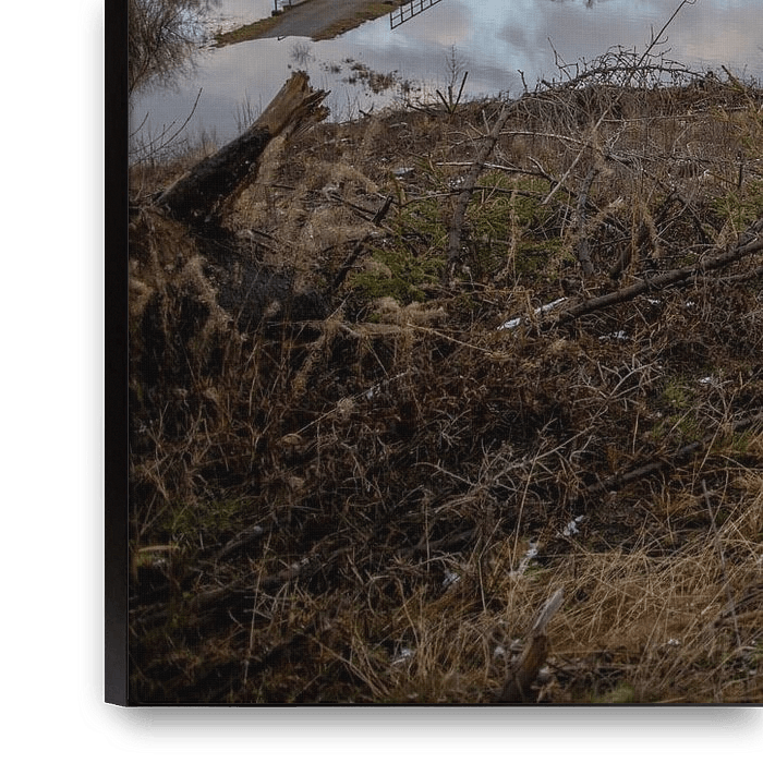 Achetez cette œuvre d'art de paysage Une soirée d'automne au bassin de protection contre les crues de la Bode froide par t.ART sur toile, aluminium, ArtFrame ou photographie (encadrée), impression d'art en haute qualité et tout format.