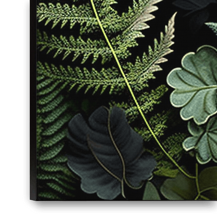 Une collection vivante de différentes feuilles vertes est disposée avec art sur un fond riche et sombre. Chaque feuille présente des motifs complexes, des formes uniques et une série de verts vifs qui donnent une sensation de profondeur, de texture et de beauté naturelle. Cette œuvre d'art haute résolution capture l'exubérance et la…