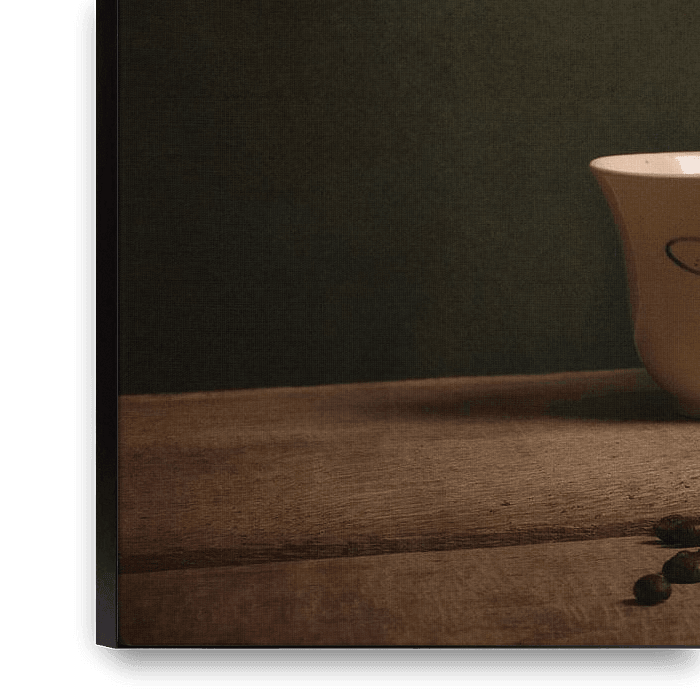 Une tasse de café du temps de la grand-mère. Inspiré par les peintres néerlandais du Siècle d'or. Une belle œuvre qui s'intègre bien dans un intérieur moderne classique. Cela vous donnera soif !