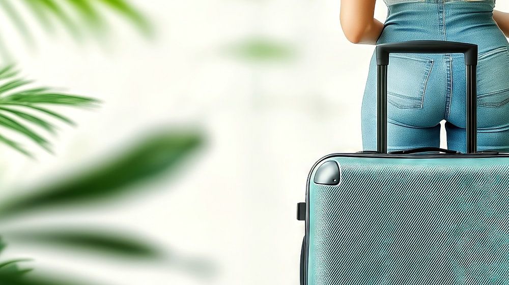 Cette scène estivale montre une touriste blonde qui tourne le dos à l'appareil photo et tient une valise à la main. Elle se trouve parmi des plantes tropicales d'un vert luxuriant, qui lui offrent un cadre naturel. Le soleil brille chaudement sur la scène et donne immédiatement le sentiment d'être au début de vacances reposantes. La valise symbolise le départ et l'envie de voyager, tandis que l'attitude de la femme - détendue et déterminée - exprime l'anticipation des expériences à venir. L'environnement tropical, combiné à l'atmosphère ensoleillée, évoque des associations de palmiers, de plages de sable, de bruits de mer et de détente. La composition de l'image dégage une impression de légèreté, de joie estivale et de nostalgie - parfaitement adaptée à des thèmes tels que les vacances, la planification de voyages, la mode estivale, le style de vie en plein air ou l'envie d'aventure. Que ce soit pour les médias sociaux, les blogs de voyage ou les campagnes publicitaires, ce motif attire immédiatement l'attention et donne envie de soleil, de mer et de détente.