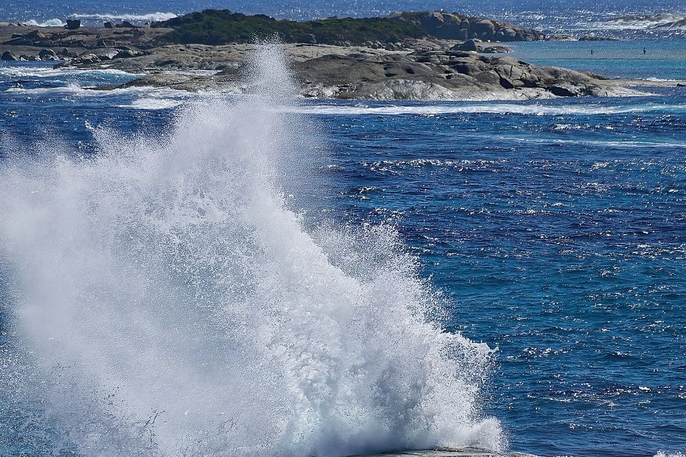 J'ai toujours aimé les vagues, surtout lorsqu'elles sont sauvages. Voici une spectaculaire vague déferlante qui s'écrase contre des rochers sur la plage près de la ville d'Ocean Beach, dans l'État d'Australie-Occidentale.