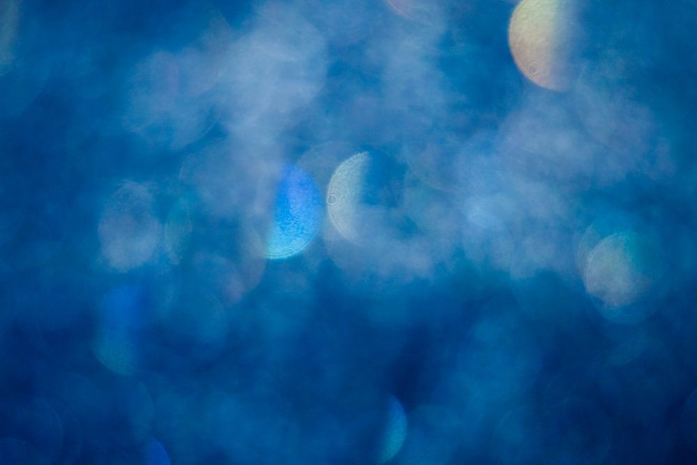 Photographie abstraite de la lumière du soleil qui se réfracte en cristaux de glace. Elle donne l'impression de regarder un univers lointain avec ses planètes.