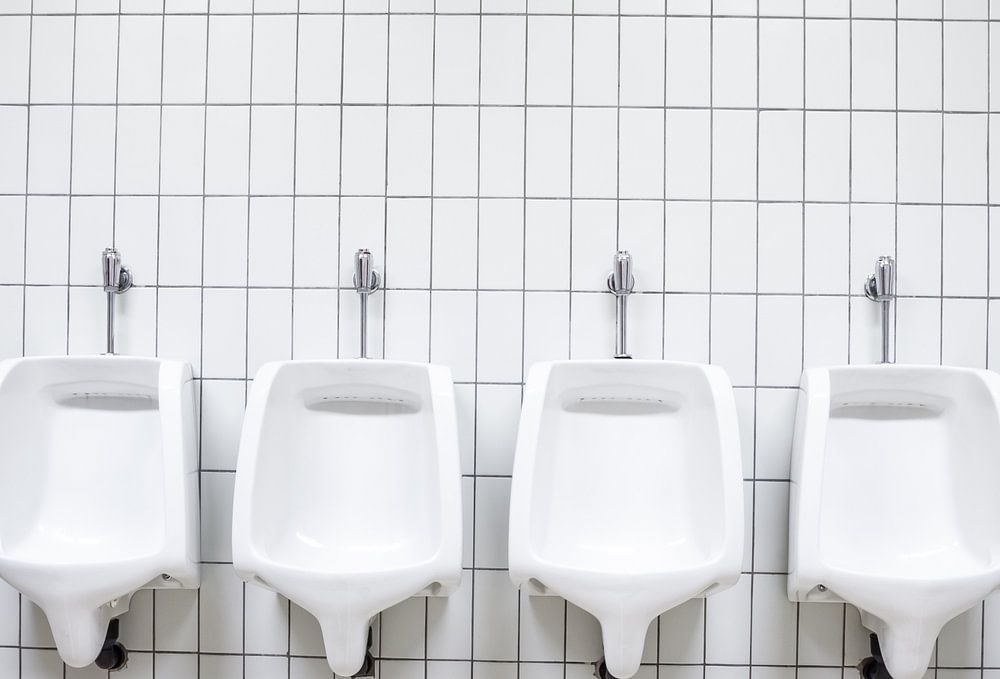 Ces urinoirs sont situés dans un lieu public d'un grand bâtiment et sont librement accessibles à tous.