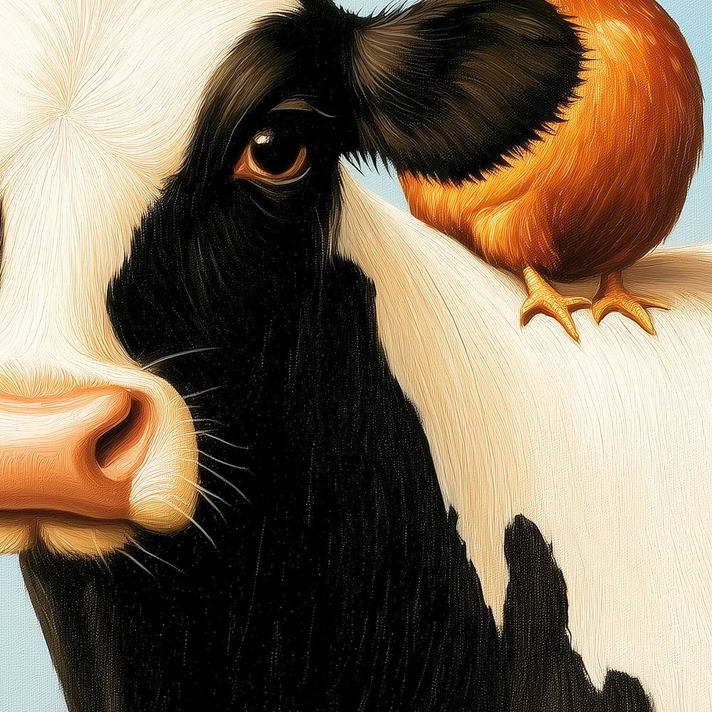 Inspiré par la sitcom, un portrait d'une vache et d'un poulet.