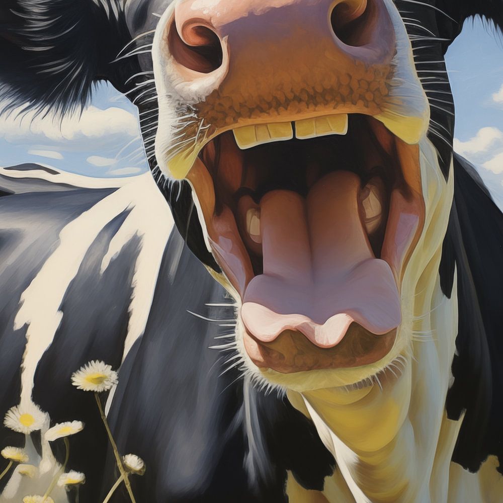 Peinture de vache heureuse avec un style magnifique et unique. Avec de belles couleurs et un design unique, ce tableau est un tirage photo élégant qui trouvera sa place dans n'importe quelle pièce. 100% unique et original !