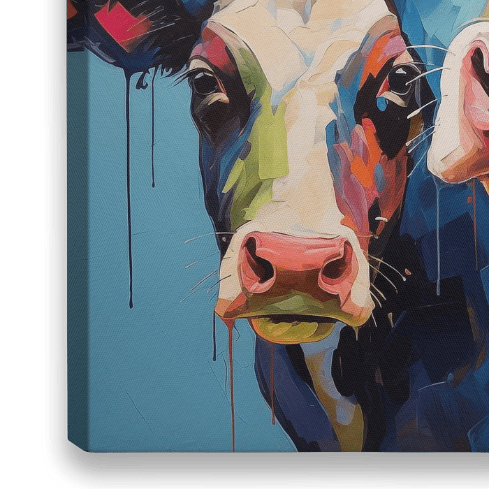 Le tableau abstrait des vaches est un tirage photo expressif et moderne qui associe le charme des vaches à un style artistique et coloré. Ce dessin unique incorpore les formes reconnaissables des vaches dans une composition abstraite, où les formes et les lignes se mélangent de manière ludique.