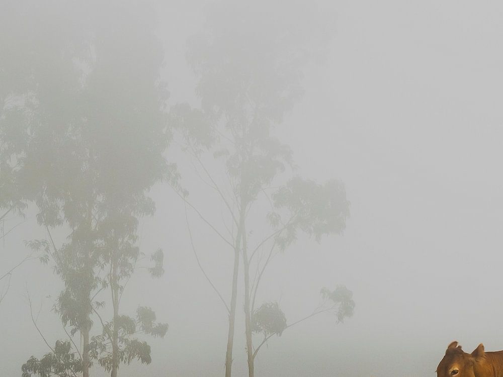 Le paysage brumeux de l'Espagne autour de Santillana del Mar avec ses eucalyptus.