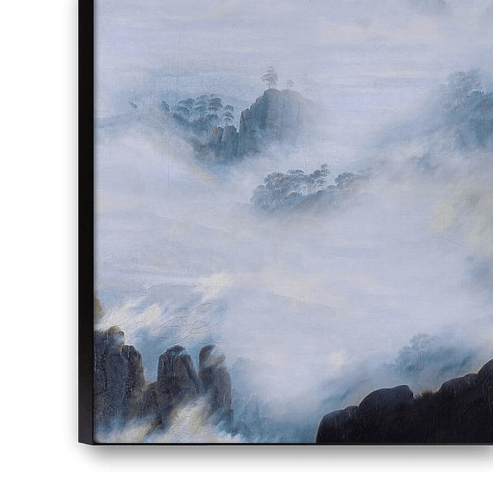 Wanderer Above the Sea of Fog est une peinture époustouflante de Caspar David Friedrich, achevée en 1818. Le tableau représente un personnage solitaire, debout au sommet d'un affleurement rocheux et regardant une mer de brouillard, avec les pics majestueux de montagnes lointaines visibles à l'arrière-plan. L'utilisation spectaculaire de l'ombre et de la lumière, combinée à l'attention méticuleuse de Friedrich pour les détails, crée un sentiment de crainte et d'émerveillement qui en a fait l'une des œuvres les plus emblématiques du romantisme. Le Vagabond au-dessus de la mer de brouillard est une œuvre incontournable pour quiconque s'intéresse à l'histoire de l'art, et un merveilleux complément à toute collection.
