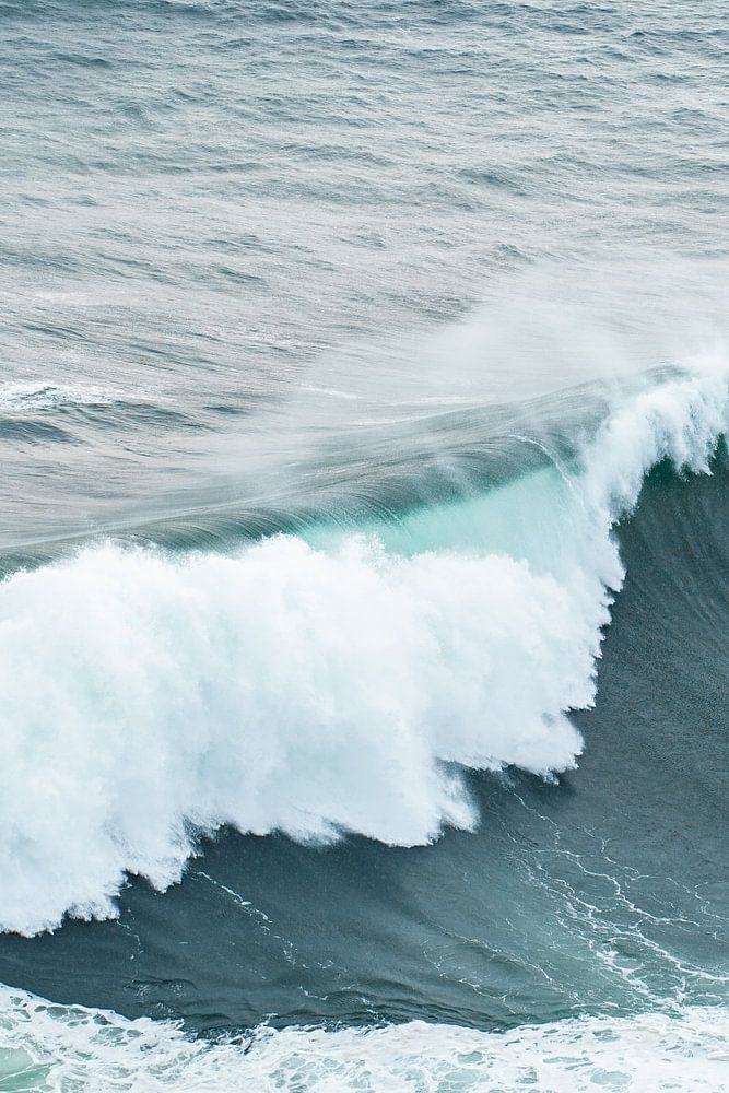 Cette photo montre une vague dans l'océan Atlantique au large de Nazaré, au Portugal. Cet endroit est connu pour ses énormes vagues et attire donc de nombreux surfeurs, photographes et autres touristes. Ce tirage est destiné aux amateurs de surf, de la mer et, bien sûr, du Portugal.