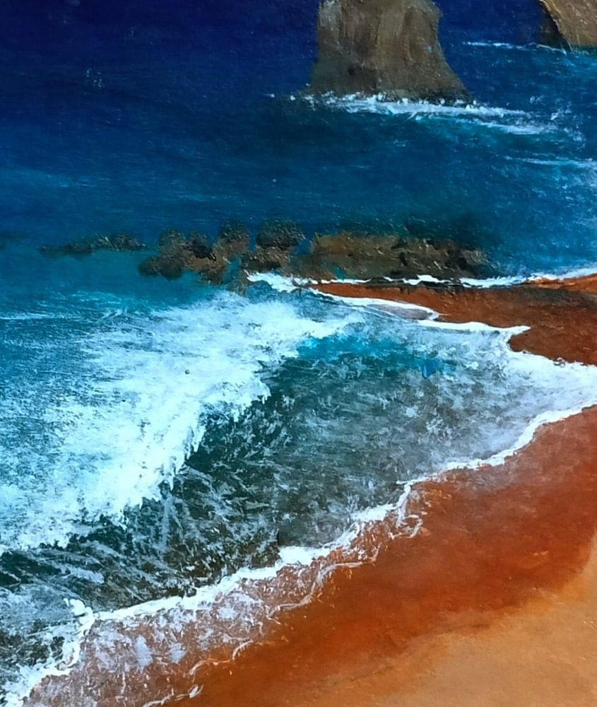 La peinture Waves of Wonder d'Augustyn Engty est un chef-d'œuvre acrylique enchanteur qui capture la danse hypnotique des vagues de l'océan. La peinture présente une scène dynamique où la lumière scintille à la surface de l'eau, chaque crête de vague débordant d'énergie et de vitalité. Le coup de pinceau d'Engty fait ressortir des couches de bleus et de verts qui se fondent harmonieusement dans des blancs écumeux, créant un sentiment à la fois de calme et de puissance. L'arrière-plan laisse entrevoir un horizon lointain sous un ciel doux et atténué, évoquant un sentiment de possibilités infinies. À travers cette œuvre, Engty invite les spectateurs à ressentir la beauté, la profondeur et le mystère de la surface toujours en mouvement de l'océan, laissant une impression persistante de l'émerveillement intemporel de la nature.