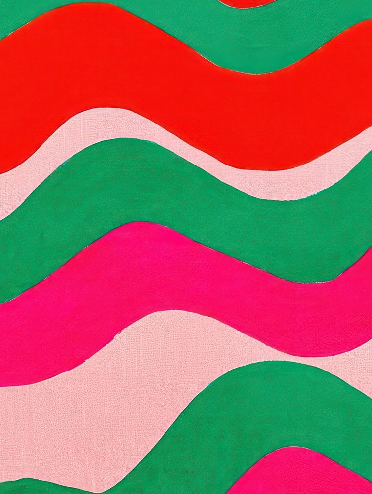 Une œuvre d'art abstraite vibrante et dynamique dans laquelle des lignes ondulées en rouge, vert et rose se déplacent rythmiquement sur un fond doux. La répétition ludique des formes crée une énergie visuelle à la fois apaisante et stimulante. La combinaison de couleurs chaudes et froides donne à l'œuvre un aspect moderne et graphique qui s'intègre parfaitement dans les intérieurs contemporains.