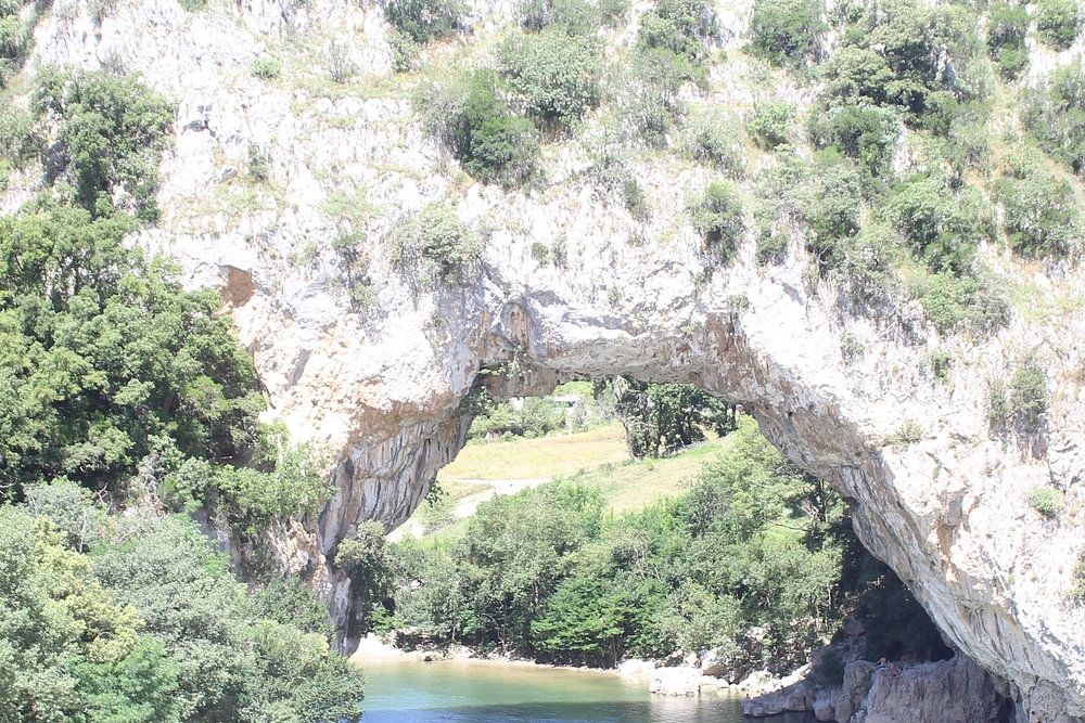 Le merveilleux pont naturel de Vallon pont D,arc. Nombreux sont les Néerlandais qui sont allés en France puis en Ardèche et qui sont passés par là. Outre le pont naturel, la région est également connue pour la plus belle grotte, classée au patrimoine de l'Unesco, dont une réplique a été réalisée et que les touristes ne doivent pas manquer lorsqu'ils sont ici. L'avantage de prendre la photo maintenant est que vous n'avez pas à partager la vue avec 100 canoës et qu'il n'y a pas de flot de touristes. Ce sont surtout les locaux et les premiers touristes qui l'empruntent, ainsi qu'un bus d'étudiants britanniques venus pour la visite de fin d'année. J'avais bien l'intention de prendre une belle photo et c'était comme je l'espérais : un peu de monde pour l'ambiance mais pas encore trop de monde, un beau temps et des niveaux d'eau favorables pour un bon équilibre entre la terre, l'eau et le pont.