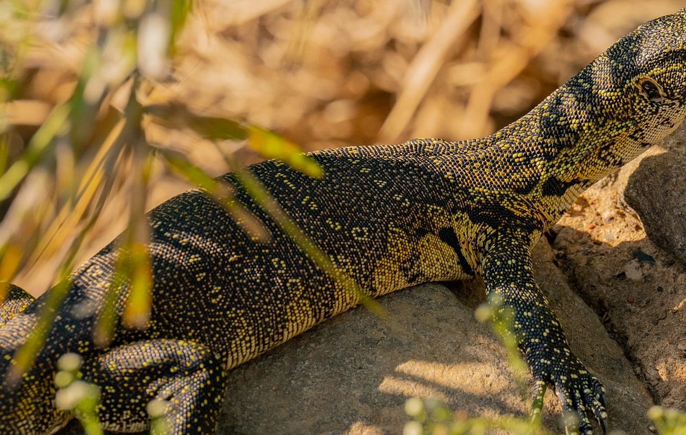 Nile monitor at the edge of a river in Hluhluwe National Park, South Africa