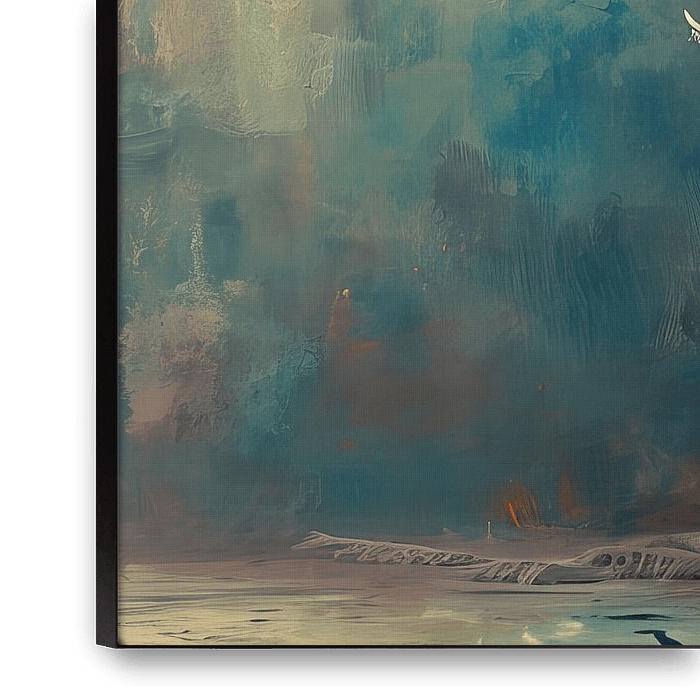 Vase avec marguerites | Nature morte fleurie - Mélange harmonieux de classique et de contemporain, cette scène apporte un charme intemporel à tout intérieur. La nature morte joue avec une lumière douce et un contraste subtil, avec un vase au centre de la scène rempli de marguerites vibrantes et de fleurs sauvages délicates. L'arrière-plan texturé va du turquoise aux tons chauds de la terre, ajoutant une profondeur apaisante à la scène.