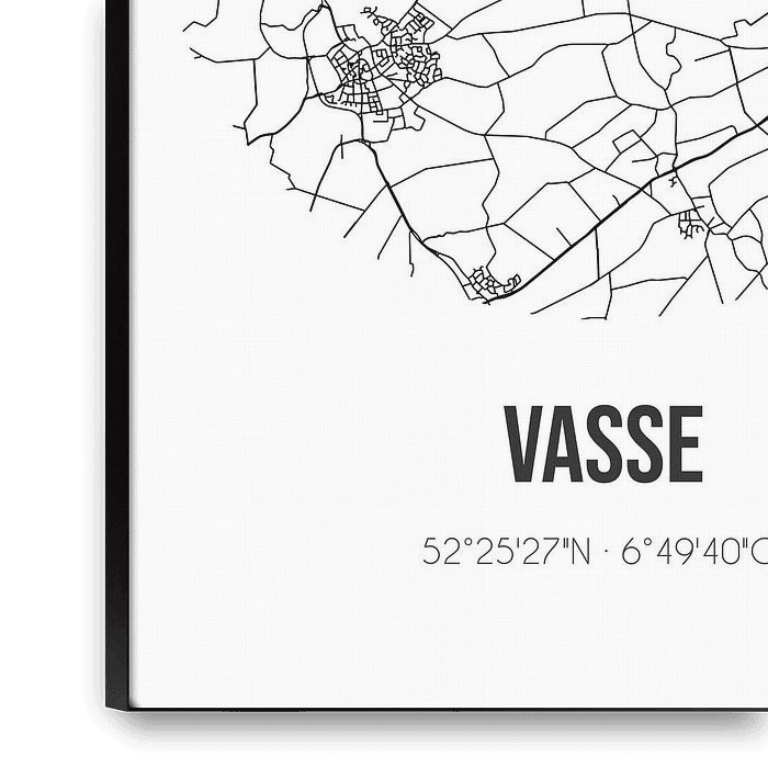 Achetez cette œuvre d'art abstraite Vasse (Overijssel) | Carte | Noir et Blanc par Affiches de lieux sur toile, aluminium, ArtFrame ou photographie (encadrée), impression d'art en haute qualité et tout format.