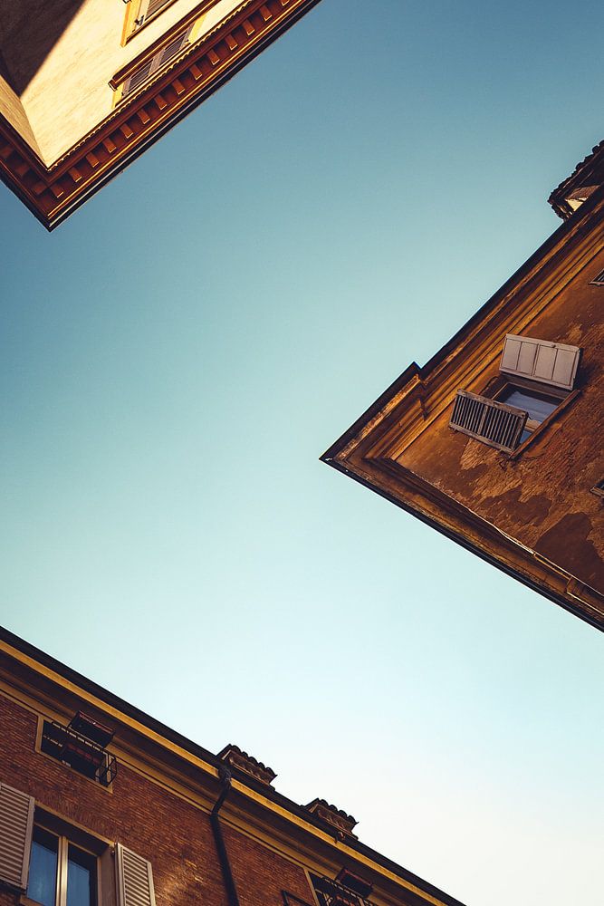 Au lieu des rues animées, cette série se concentre sur les lignes, les textures et les couleurs qui se déroulent au-dessus de nous. Il s'agit d'une étude de la perspective unique de l'admirateur, du voyageur qui s'arrête et fixe son regard sur le ciel. Les images capturent la chaleur du soleil italien sur des murs séculaires, les motifs rythmiques des fenêtres et les témoins silencieux d'un riche passé.
