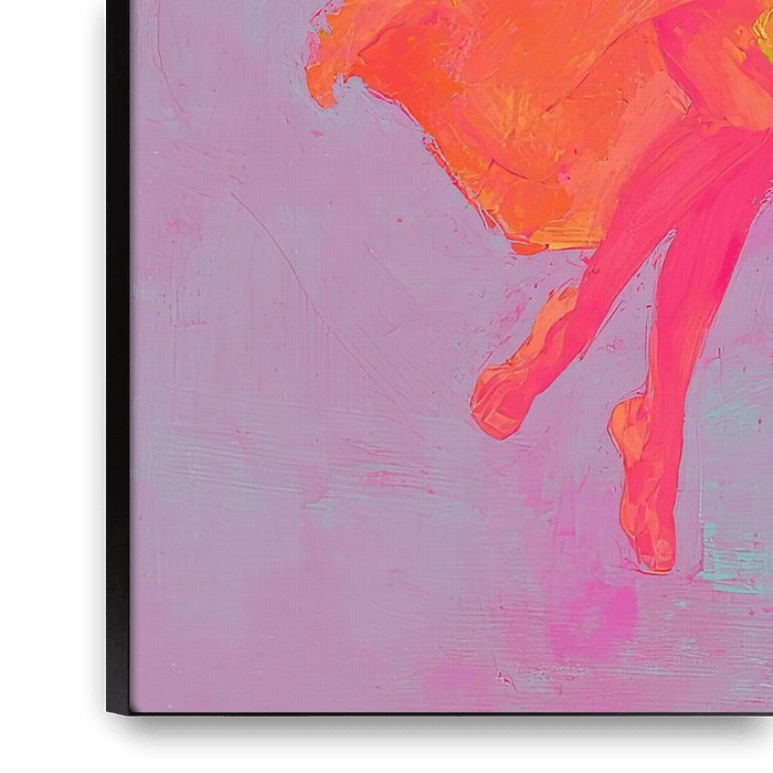 Dance Vibes - Cette peinture colorée représente trois femmes dansant dans des couleurs vives et éclatantes telles que le rose, le vert et le bleu, vêtues de robes virevoltantes qui capturent parfaitement le mouvement et l'énergie de la danse.