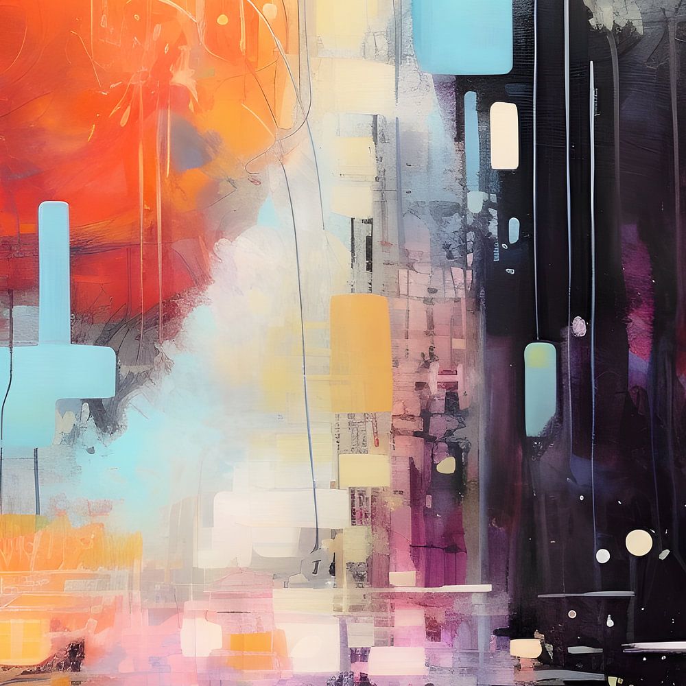 Une peinture abstraite, la vie nocturne quelque part dans une grande ville mystérieuse.