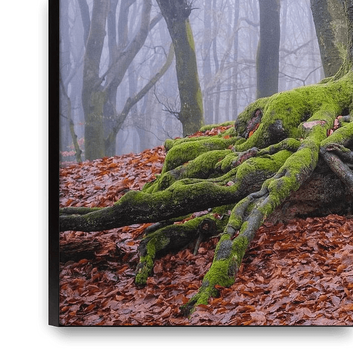 Achetez cette œuvre d'art de paysage Vieil arbre tordu dans le Speulderbos à Ermelo, aux Pays-Bas, avec des feuilles au premier plan et d par Bart Ros sur toile, aluminium, ArtFrame ou photographie (encadrée), impression d'art en haute qualité et tout format.