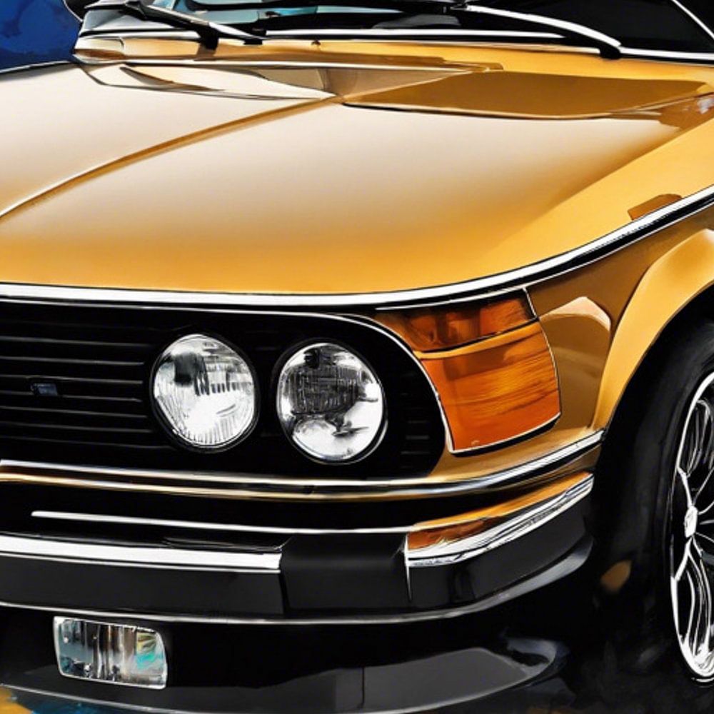 Ancienne Bmw colorée, cette Bmw a une belle couleur jaune. L'arrière-plan fait bien ressortir la Bmw. La Bmw est donc bien visible. Ce travail a été réalisé avec AI