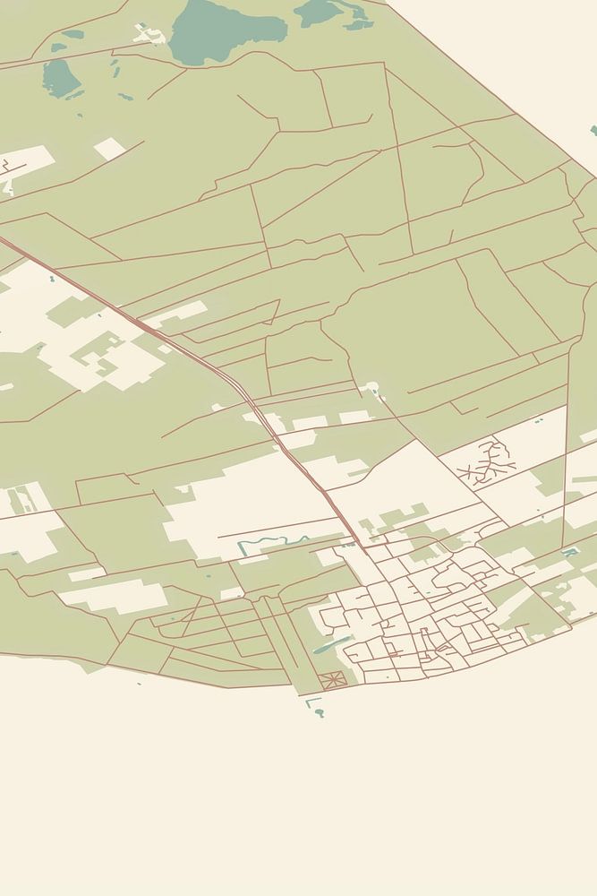 Carte rétro de Putte, située dans la commune de Woensdrecht, province de Brabant-Septentrional. La carte montre les routes publiques, les cours d'eau (lacs, ruisseaux et fossés) et les forêts dans et autour de Putte. En outre, la carte contient les coordonnées de Putte.
