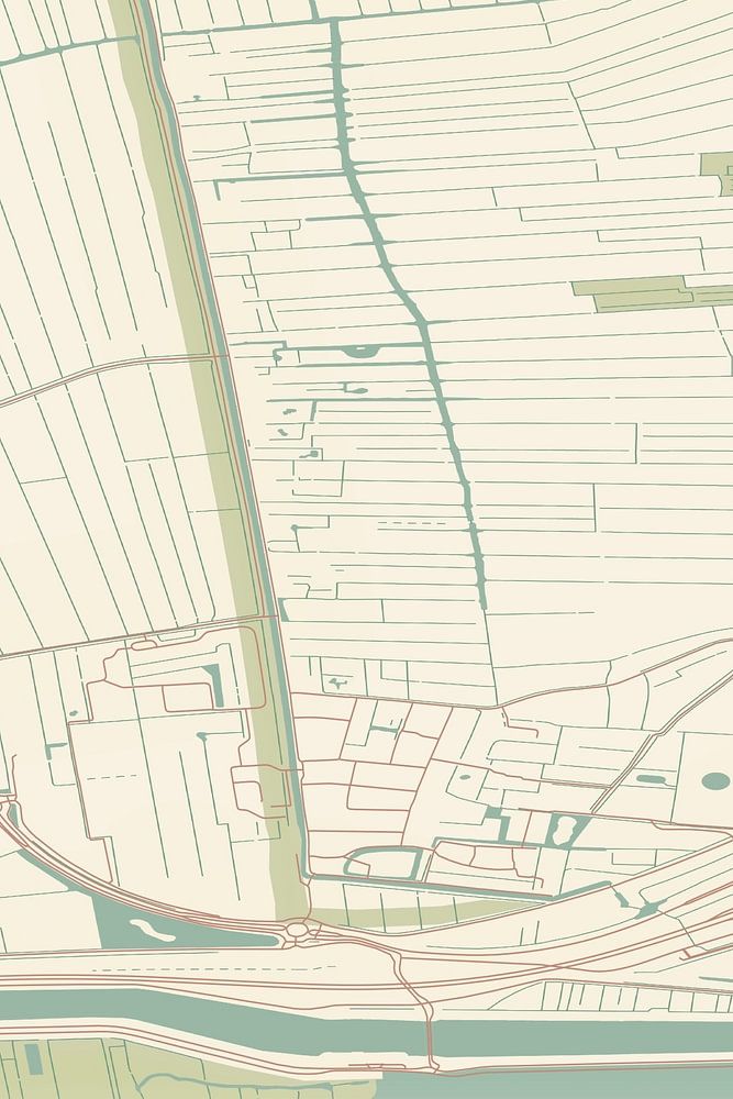 Carte rétro de Schelluinen, située dans la commune de Molenlanden, province de Hollande méridionale. La carte montre les routes publiques, les cours d'eau (lacs, ruisseaux et fossés) et les forêts dans et autour de Schelluinen. En outre, la carte contient les coordonnées de Schelluinen.