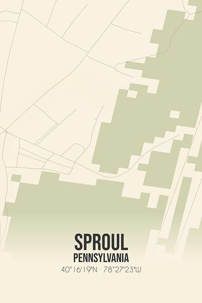 Vieille carte de Sproul (Pennsylvanie), USA. par Affiches de lieux