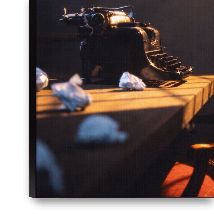 Récemment, j'ai eu du mal à trouver les bons mots pour partager quelque chose de personnel avec quelqu'un. Cela m'a inspiré la création de cette œuvre. Rien que dans mon salon, on voit de belles choses anciennes. Du vrai bois, une vraie machine à écrire, une belle vieille chaise. Les objets ont beaucoup de caractère. Ils ne font pas ce…