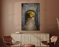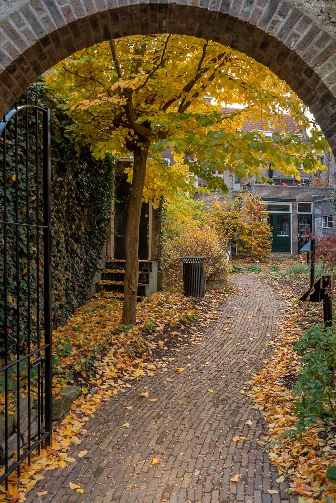 Une partie du musée Gouda est l'ancien jardin du musée. Le musée est installé dans le Catharina Gasthuis depuis 1947. Photo de la porte dans le jardin du musée pendant l'automne aux Pays-Bas.