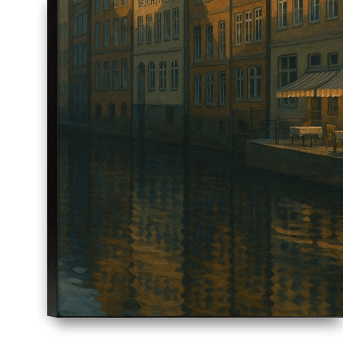 Achetez cette œuvre d'art de paysage Vieille ville de Hambourg : Café Light sur la Nikolaifleet par Travel Shop sur toile, aluminium, ArtFrame ou photographie (encadrée), impression d'art en haute qualité et tout format.