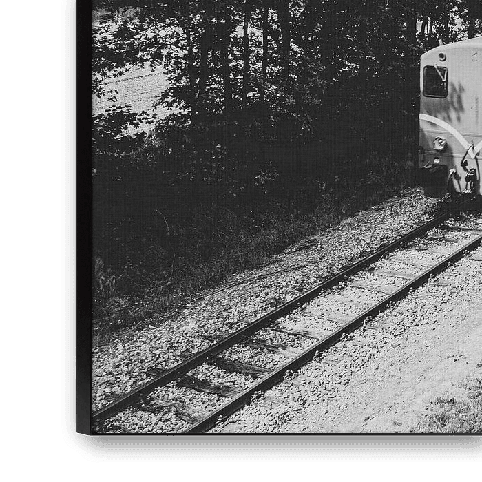 Vieux train de marchandises diesel dans la campagne, vu d'en haut. L'ancienne locomotive diesel tire des wagons de marchandises sur une voie ferrée à travers les bois et les champs. Photo en noir et blanc. L'énorme moteur diesel à l'avant du train travaille dur, le son du moteur se répercutant dans tout le paysage. Au passage du train, vous pouvez sentir le sol trembler sous vos pieds, et le son du klaxon résonne dans la campagne. Les roues du train grincent et craquent sur les rails. Malgré son âge et son extérieur rugueux, il y a un sentiment de majesté et de puissance dans ce vieux train de marchandises diesel, alors qu'il se fraye un chemin à travers la campagne, transportant sa cargaison vers sa destination.