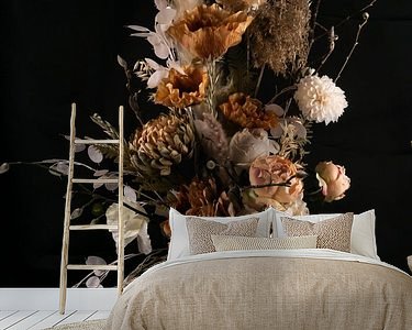 Et cette photo pourrait s'adapter à toutes sortes d'intérieurs. Je suis moi-même fleuriste, c'est pourquoi j'aime photographier des fleurs, de préférence dans un beau vase vintage. J'adore la poterie bleue delft, mais cette fois, j'ai opté pour la poterie Cologne, qui est également superbe et dont la couleur est plus discrète. J'espère donc qu'il pourra devenir un joli accroche-regard sur votre mur, à la maison mais aussi dans les magasins, les bureaux, etc. C'est cool comme papier peint sur un mur à la maison.