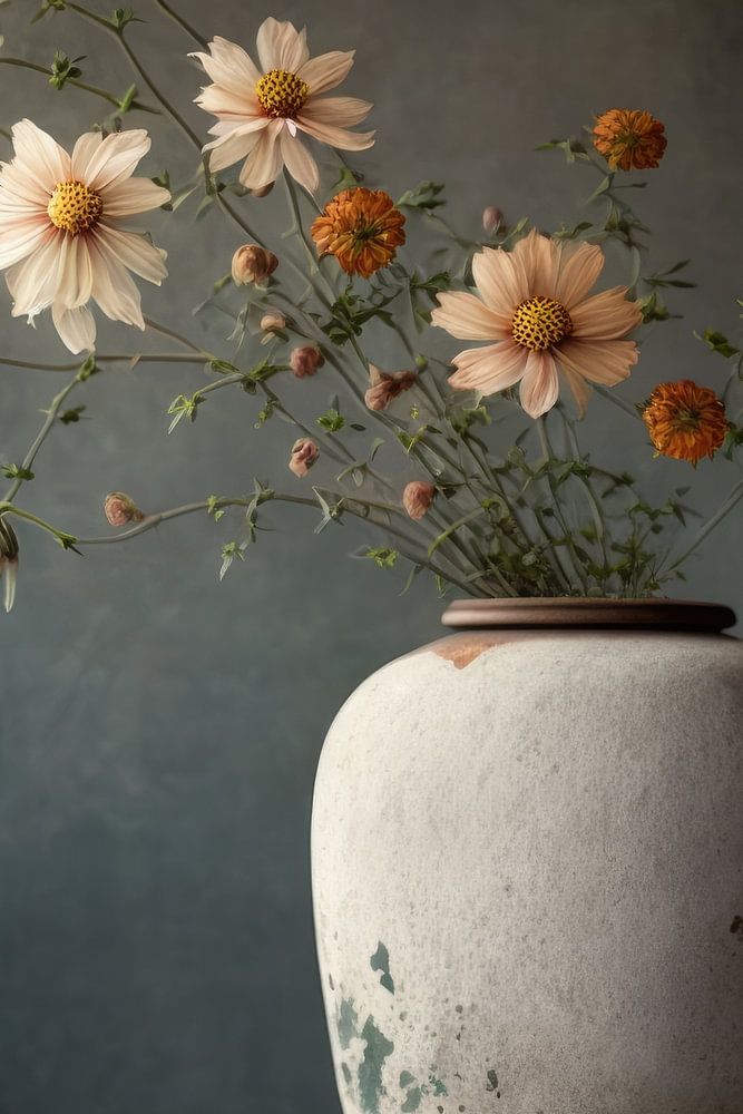 Si vous recherchez une œuvre d'art qui respire le confort et la chaleur, notre nature morte avec un vase blanc et des fleurs douillettes, créée à l'aide de la technologie de l'IA, est le choix idéal pour vous. Cette magnifique nature morte a été conçue et créée à l'aide des dernières technologies de l'IA. Le vase blanc a été spécialement conçu pour mettre en valeur les fleurs douillettes et donner un aspect chaleureux à l'ensemble, et les fleurs ont été soigneusement choisies pour renforcer l'atmosphère de confort et de chaleur. Notre nature morte avec un vase blanc et des fleurs douillettes, créée à l'aide de la technologie de l'IA, est une œuvre d'art unique et innovante qui ne manquera pas d'attirer l'attention de tous ceux qui la verront. Complément idéal de tout intérieur, qu'il soit moderne ou classique, faites entrer cette magnifique nature morte chez vous dès aujourd'hui et profitez de l'atmosphère douillette et chaleureuse qu'elle dégage au quotidien.