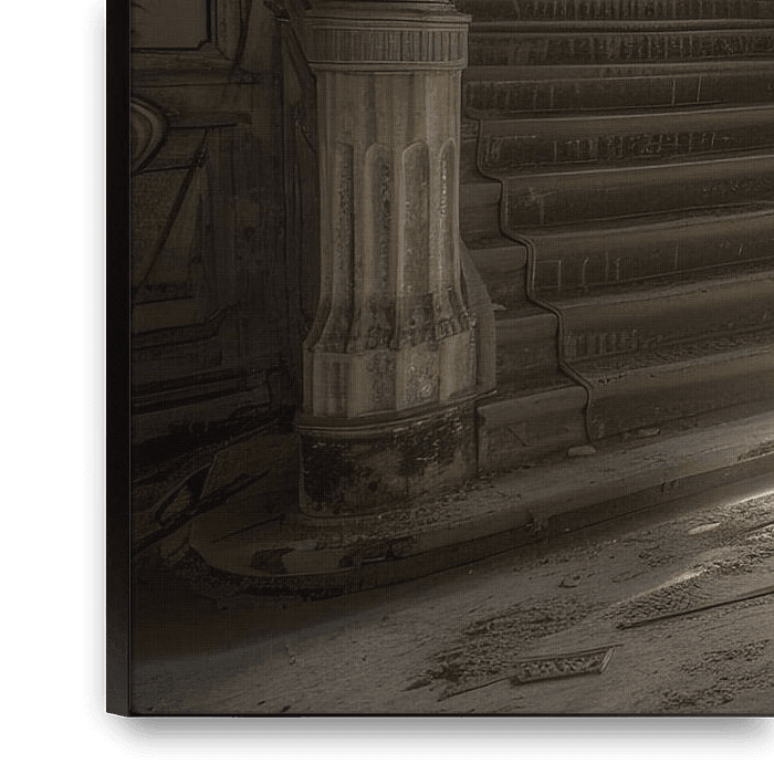 "Splendeur fanée" est une œuvre d'art impressionnante qui capture la beauté sublime d'une villa abandonnée, dont l'élégance d'antan est atténuée par les traces du temps. Des rayons de lumière percent le plafond brisé, éclairent l'escalier qui s'effrite et les colonnes dorées poussiéreuses. Cette image confère au silence et à la solitude…