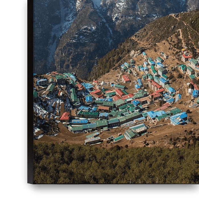 Achetez cette photo Village Namche Bazaar par Ton Tolboom sur toile, aluminium, ArtFrame ou photographie (encadrée), impression d'art en haute qualité et tout format.