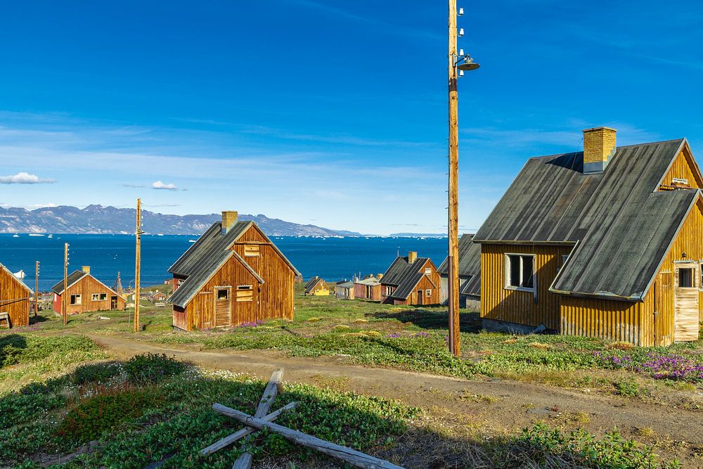 Une vue du village de Qullissat, évacué en 1972, sur le côté est de l'île de Disko au Groenland. La ville a été le théâtre de l'exploitation minière locale pendant plusieurs décennies, mais a été fermée en raison de la politique de consolidation du Danemark. Plus tard, des tsunamis provoqués par des glissements de terrain ont frappé le village. Certaines rues ont été totalement détruites.