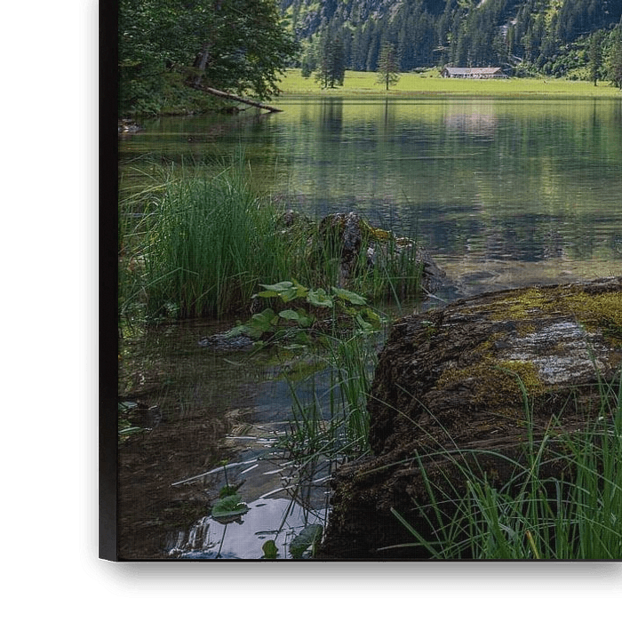 Le Vilsalpsee au Tyrol, entouré de hautes montagnes vertes et d'un ciel merveilleusement décoratif.