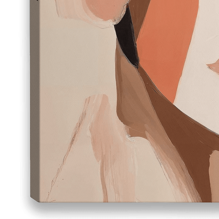 Portrait abstrait d'une femme dans les tons de terre. Couleurs : rose, saumon, marron, beige, noir et blanc. Reconnaissable en tant que femme, il laisse une grande place à l'imagination et à l'interprétation personnelle. Intemporel. Convient à différents styles et tendances.